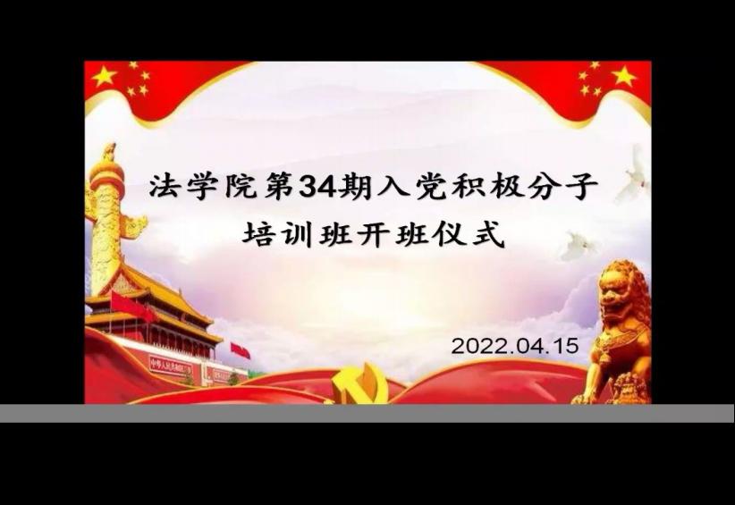 2022年4月15日晚,法学院党委通过腾讯会议线上举行第34期入党积极分子培训班开班仪式。法学院党委书记、副书记、院长、各党支部与团总支书记、辅导员及培训班165名学员参加活动。