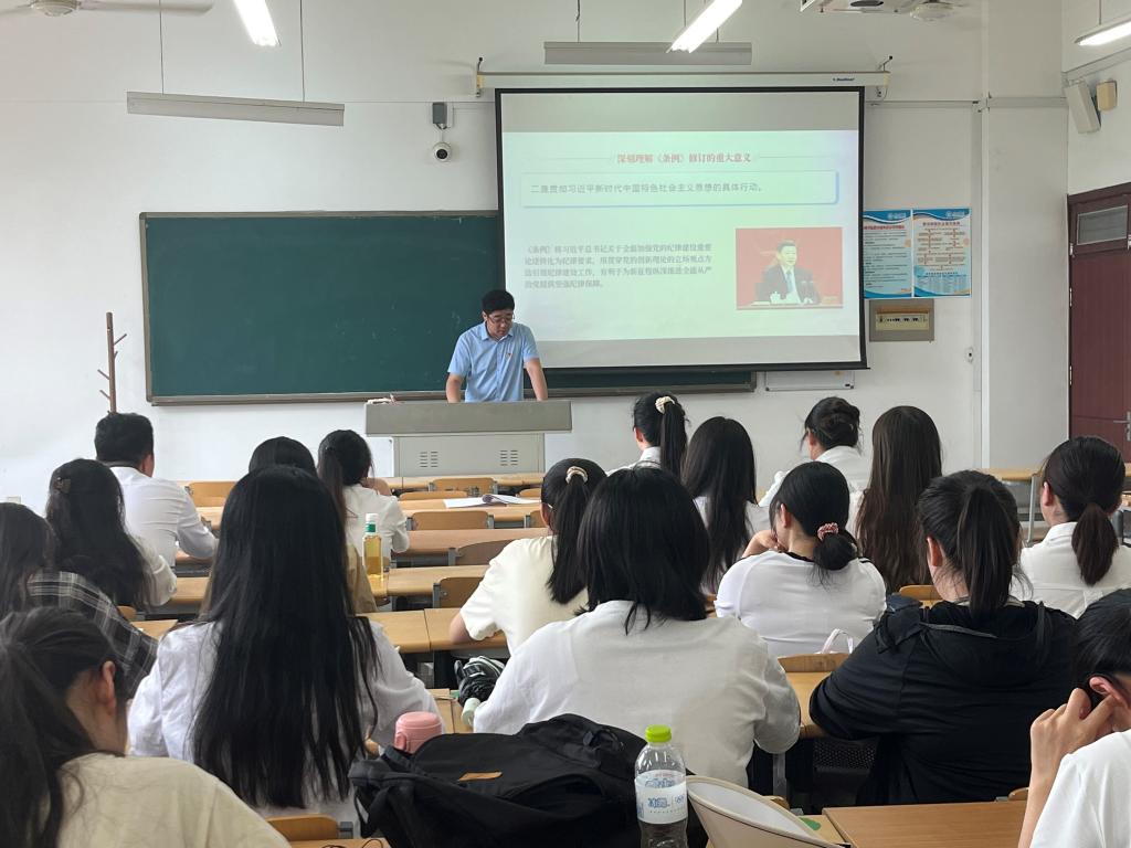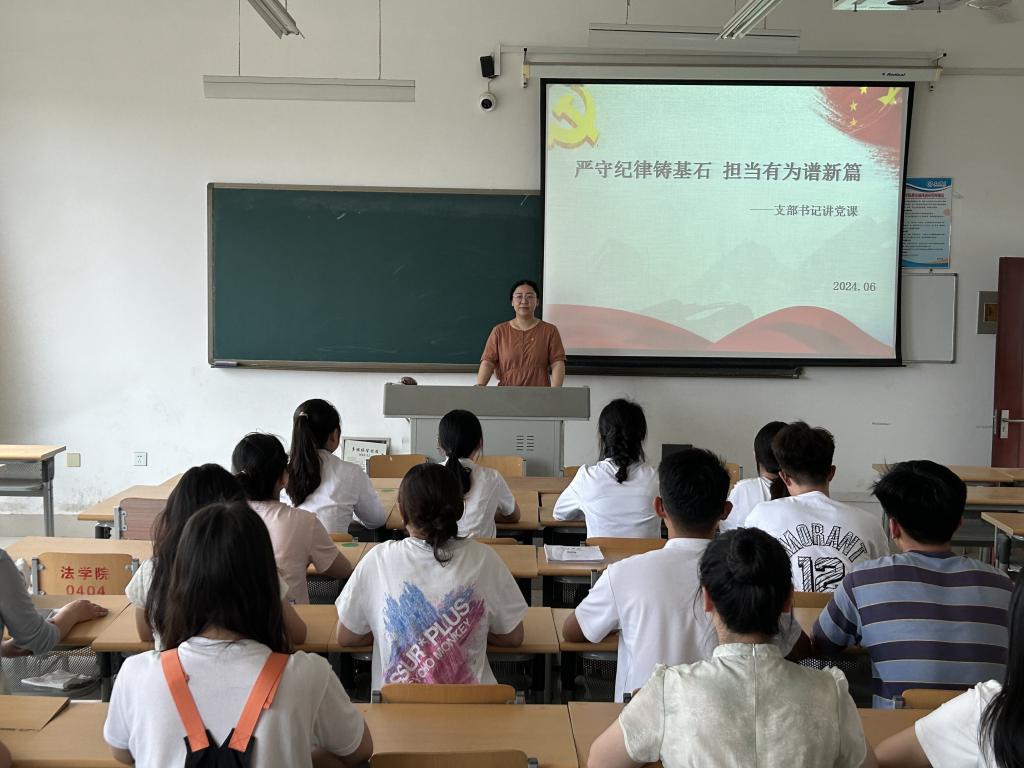 学院党委副书记王海霞以及5名党支部书记分别以《加强纪律修养,严格履行岗位职责》《全面加强党的纪律建设-学习解读<中国共产党纪律处分条例>》《党的“六大纪律”的主旨要义》《严守纪律铸基石 担当有为新篇章》等为题,为学院师生党员代表、所在支部党员上党课。党课内容紧扣党纪学习教育核心要求,围绕《中国共产党章程》《中国共产党纪律处分条例》等党内法规,结合法学院专业特色和党员队伍实际状况,深入讲解开展党纪学习教育的重要性和必要性,通过生动的案例剖析、深入浅出的理论阐述和互动交流等方式,引导党员们深刻理解党纪的内涵和外延,增强遵守党纪的自觉性和主动性,将党纪学习教育与提升工作本领、锤炼过硬作风相结合,切实把党纪学习教育成果转化为推动解决制约专业发展和学科建设的实际举措和具体成效,为推动学院高质量发展贡献力量。