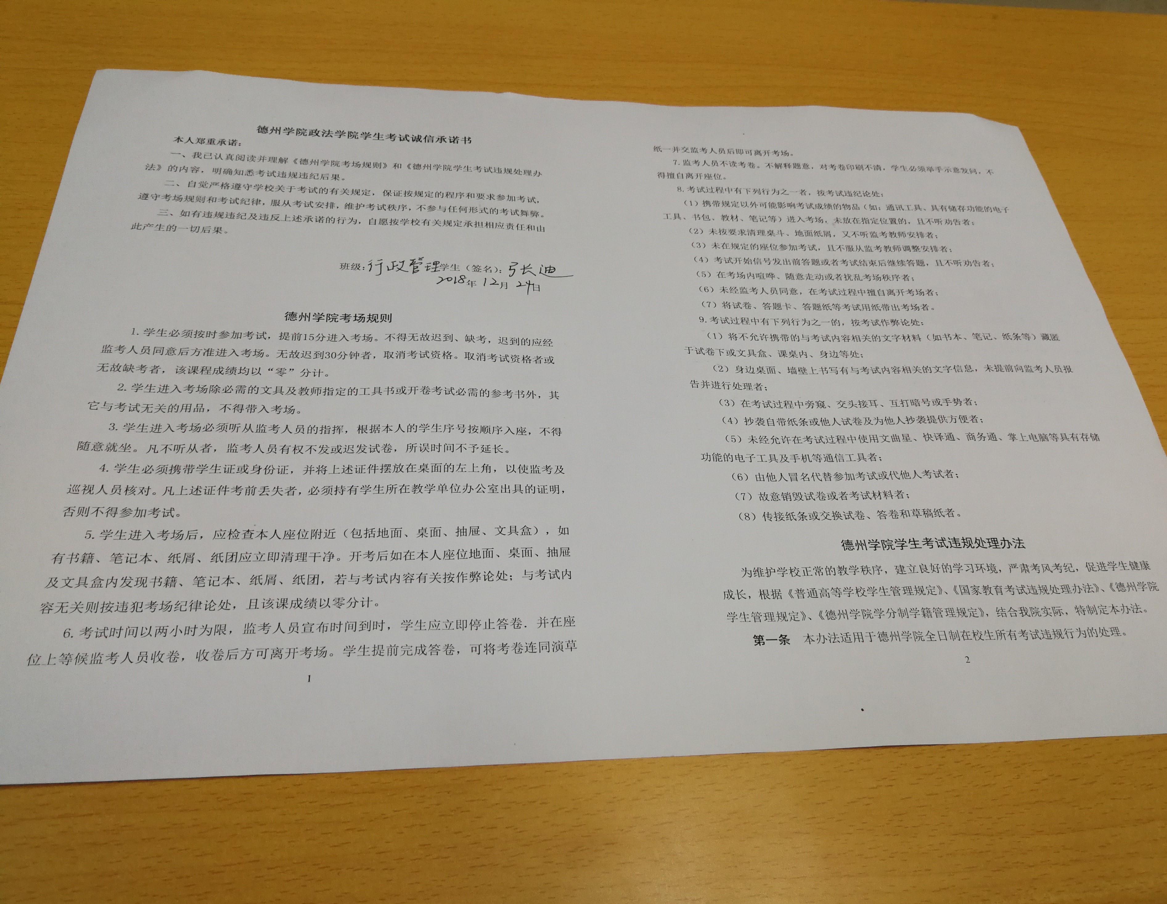 2018年12月24日晚,政法学院于博文楼4楼成功开展了考生签署学生考试诚信承诺书的专项活动。政法学院全体18级学生参加了此次活动。