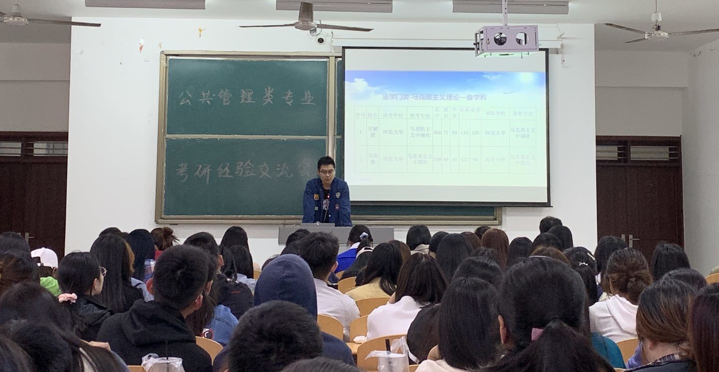 为帮助同学们了解考研信息、掌握考研技巧、增强学生考研信心,法学院于4月13日下午两点在博文楼427教室举办公共管理类专业考研经验交流会。行政管理专业和公共事业管理专业学生参与此次交流会。