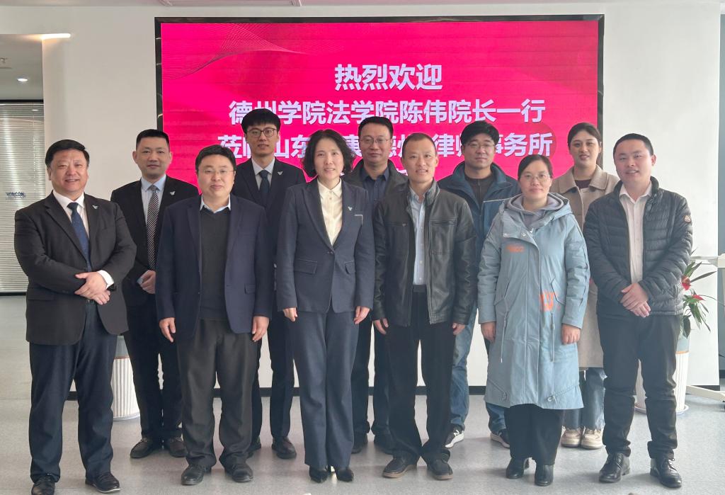2023年3月24日上午,法学院与山东文康(德州)律师事务所实习实训基地和就业基地签约仪式在山东文康(德州)律师事务所隆重举行。法学院院长陈伟一行七人参加活动,山东文康(德州)律师事务所主任艾民热情接待了法学院一行。