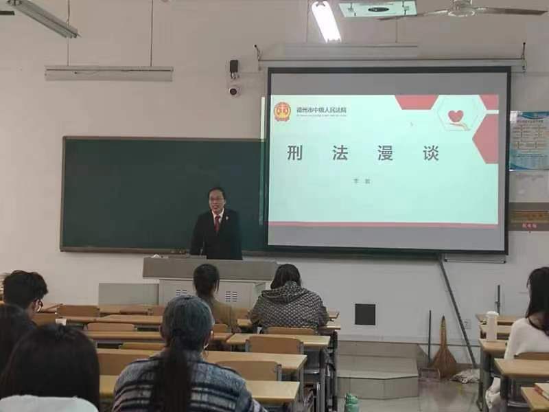 3月25日下午,德州市中级人民法院刑庭法官郭伟伟、李敏应邀为德赢官网师生做专题讲座,2022级法学本科班学生和部分教师聆听了讲座。
