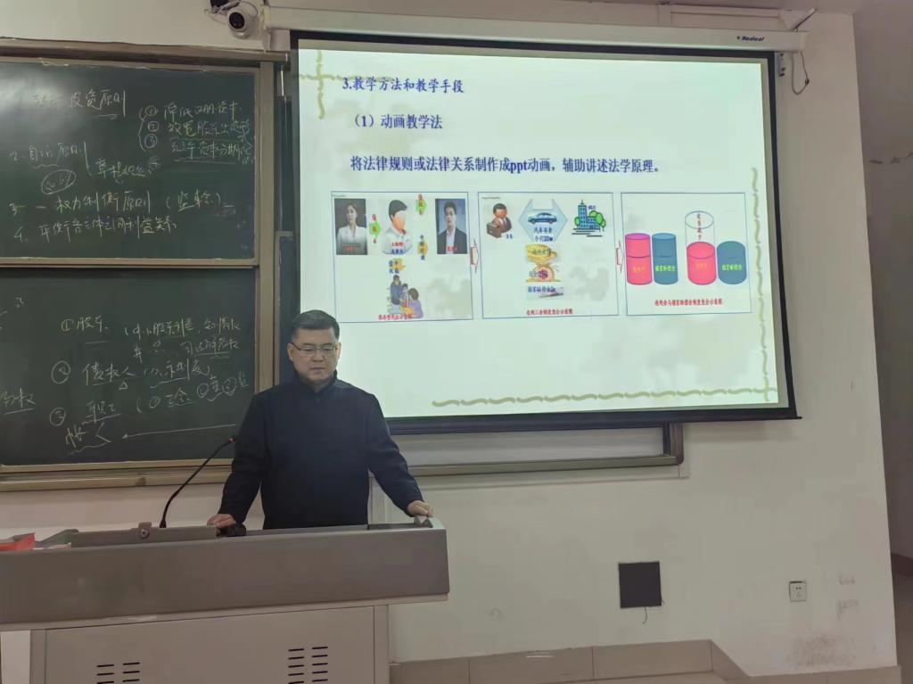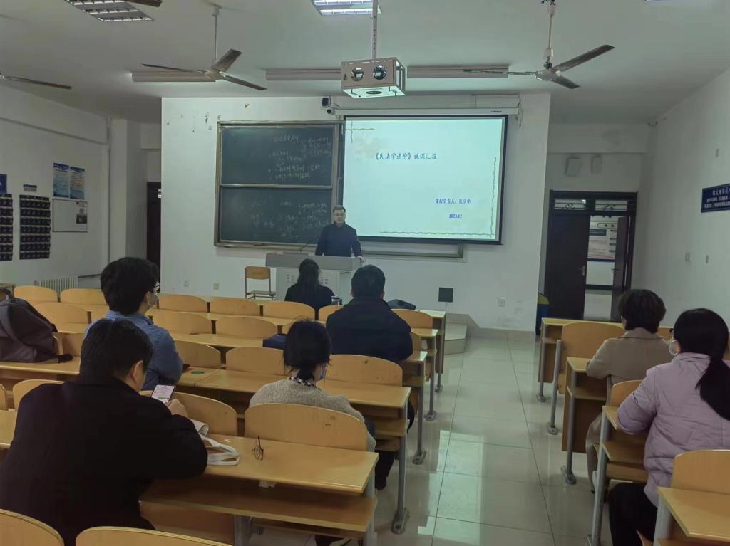 2024年4月2日下午,法学院民商经济法学教研室在博文楼427教室组织了教研室活动,教研室主任孟海鹏老师主持。此次教研室活动主要由张庆华老师对于《民法学进阶》课程进行说课展示,教研室内部进行集体学习和交流。另外,对于近期学校组织的教学材料检查工作的反馈情况,教研室内部也进行了讨论沟通,总结经验与不足,并提出相应整改方案。
