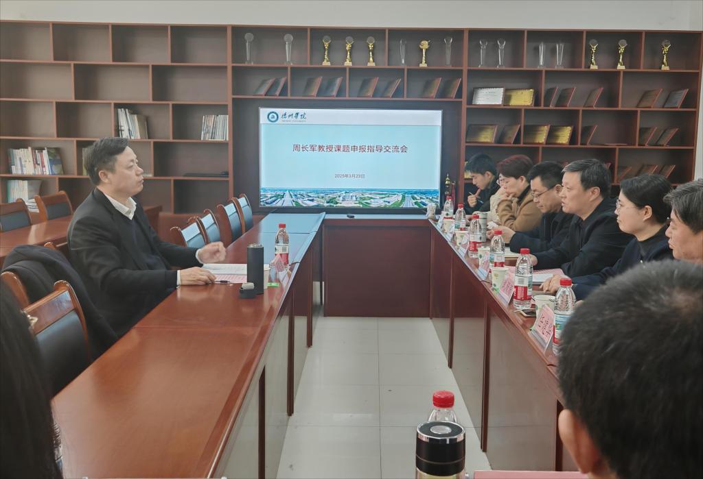 在随后的国家级课题申报专项指导会上,李甲亮对周长军院长来校指导工作表示欢迎,对山东大学多年来给予德赢ac米兰官方合作的帮助支持表示感谢。李甲亮还介绍了学校学科建设、人才培养、科学研究等方面的情况。周长军对德赢ac米兰官方合作教师国家级课题的申报书逐一进行点评,并提出中肯的意见及修改建议。