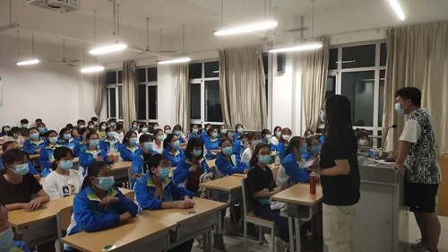 首先,指导老师在演练教室对2020级新生进行安全防疫常识指导,并就教室出现发热等特殊情况的应急处置流程进行演练和相关业务培训。其次,老师及场所联络员分别去20级新生宿舍进行走访,模拟特殊情况的应急处理流程,做好正确的防御措施。通过模拟学生在宿舍,教室出现发热等特殊情况的应急处置流程情况,确保疫情防控“早发现、早报告、早隔离、早诊疗”。演练中,大家按照既定方案,紧贴实战要求,分工明确、流程规范、配合密切,对可能出现的突发应急事件给予有效的解决。法学院2020级全体新生高效地完成了本次应急演练。