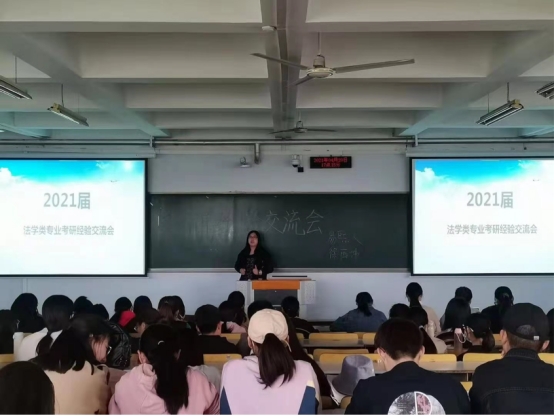 4月20日下午3点,法学院于美术公教楼409教室举办了2021届法学专业考研经验交流会,法学系副主任凡冬梅老师主持会议,法学专业学生参加了此次交流会。