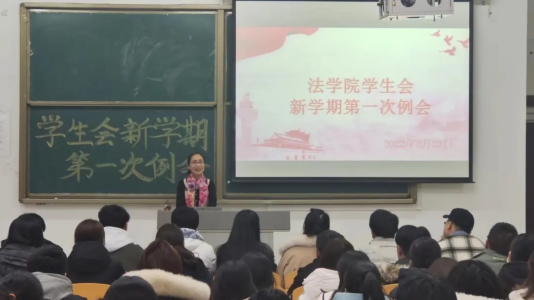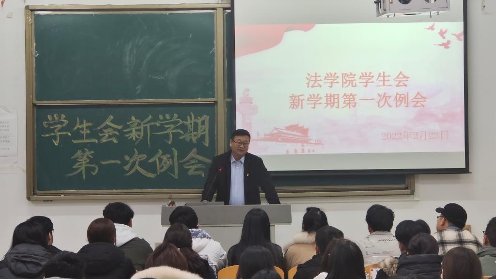 为了调动同学们新学期的学习与工作热情,2022年2月23日,法学院于博文楼427教室召开“法学院学生会新学期第一次例会”。法学院党委书记、副书记,学生工作队伍以及全体学生会成员参与本次会议。