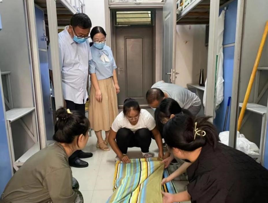 在走访过程中,领导、老师们将关怀和问候送到了每一位同学身边,亲切的叮嘱同学们要注意网络安全和自身财产安全,防止被诈骗、整理好内务、注意与同学和谐相处。同时,新生的军训生活也即将开启,对此,党委书记、院长和老师希望同学们能以饱满的热情和精神状态投入到军训生活中,同学间相互关心、相互帮助、共同成长。