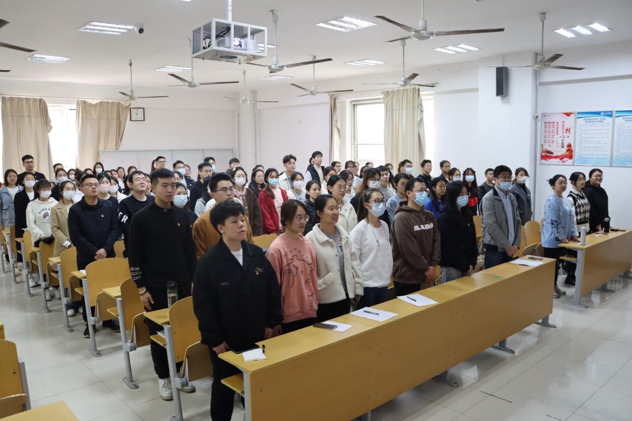 法学院各分会场随大会议程,全体起立唱中华人民共和国国歌,为已故老一辈无产阶级革命家和革命先烈默哀。