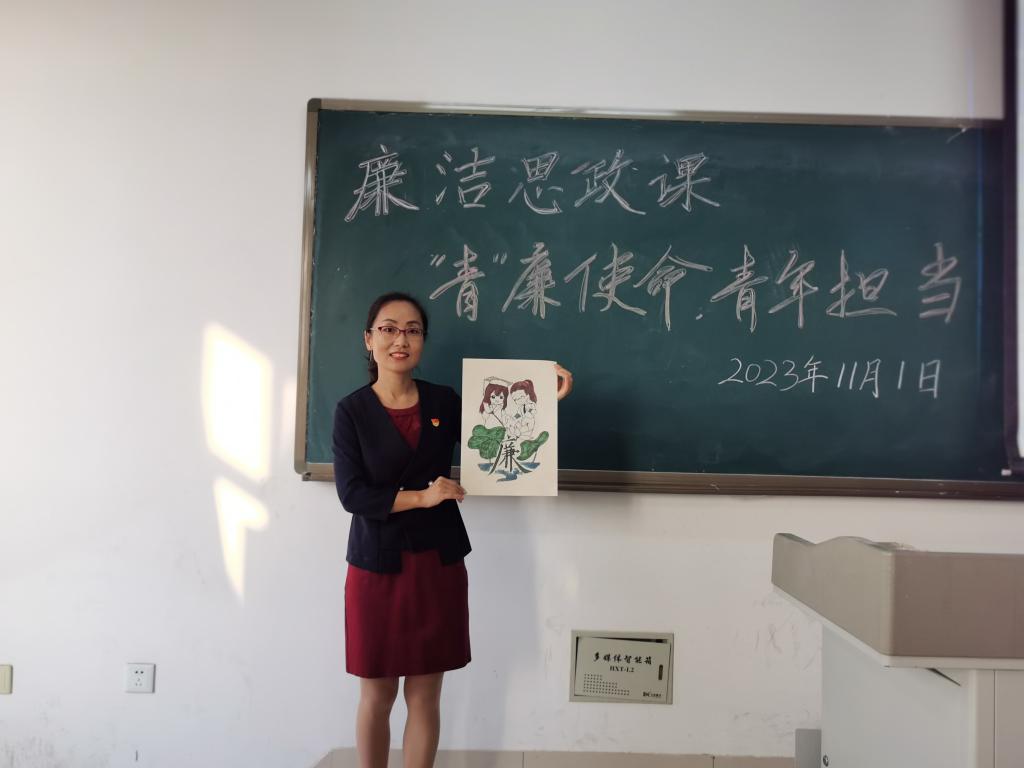 主讲教师左海静老师以“‘青’廉使命 青年担当”为主题,以“讲解+图片+文字+视频”的方式,从“青”廉使命和青年担当两个单元讲述了青年在学廉、思廉、崇廉、守廉四个方面的自我认知和行为警示。结合学生的书画作品《砥廉峻隅》《“廉”花绽放》,分享了《君子如莲、洁身自好》《礼物》《醒世恒言》等其中的清廉小故事,将尚学孝廉的清廉之风浸润到青年的心底里。并鼓励广大青年心怀清廉之心,以廉心守初心,以担当践使命,做无愧于时代、无愧于青春、无愧于党和人民的“青”廉人。