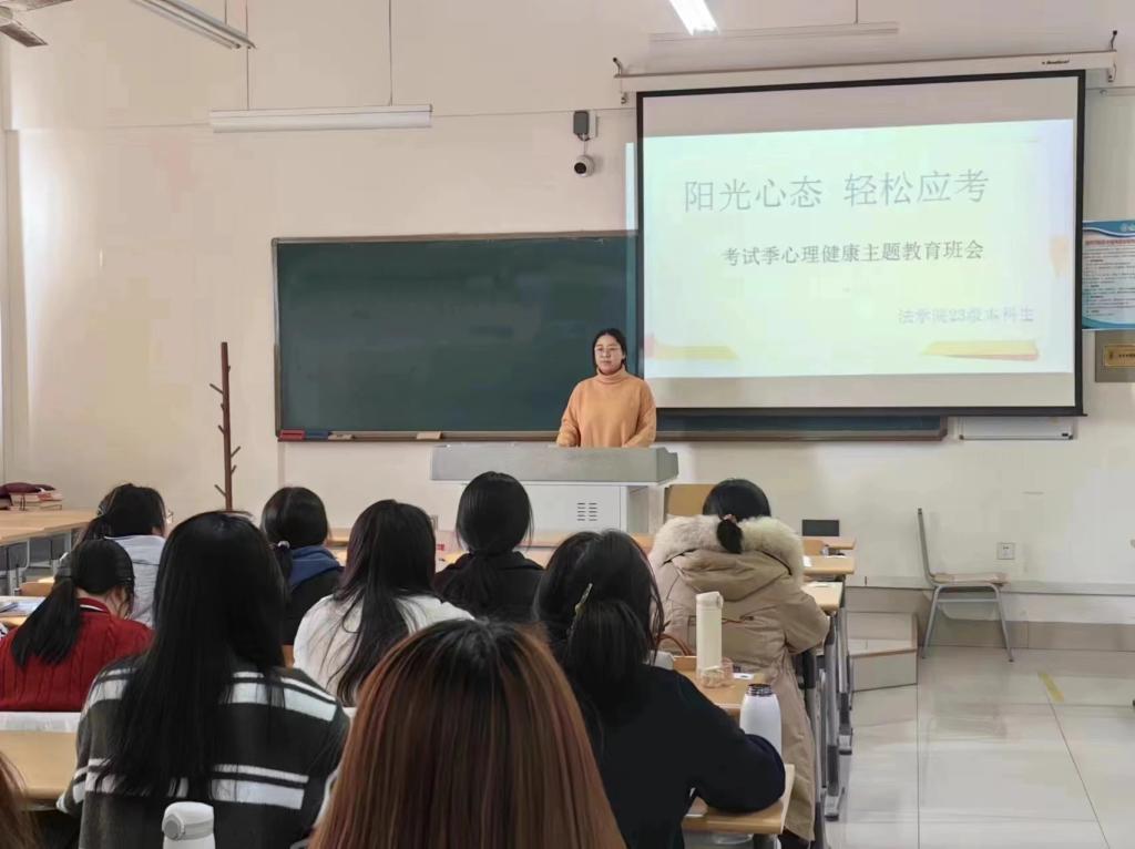 法学院开展“阳光心态,轻松应考”考试季心理健康主题教育班会