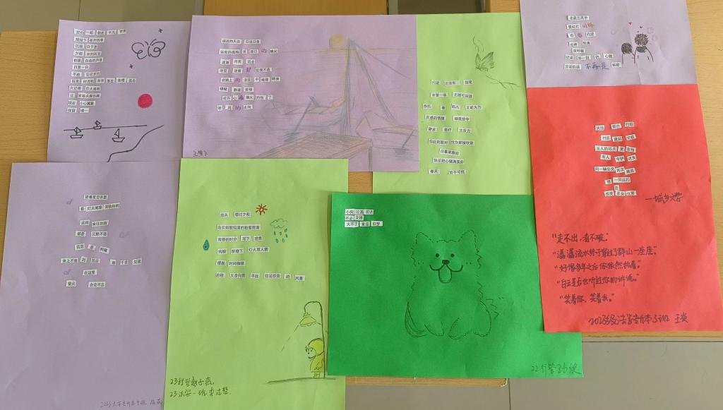 活动伊始,同学们依次从箱子中抽取纸条,将抽中的字词句进行拼贴组合,创造出了一首首属于自己的诗歌。这些诗歌有的表达了对未来的憧憬,有的抒发了对友情的珍视,还有的反映了内心的挣扎与成长。每一首都展现了同学们独特的心理世界。在交流分享环节,同学们纷纷展示自己的作品,并分享创作过程中的心路历程,将诗歌背后的故事和情感娓娓道来,同学们在交流中也感受到了彼此心灵的共鸣。