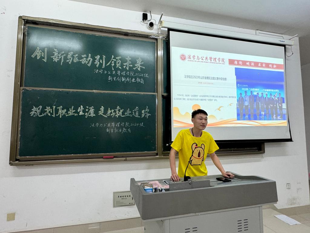 学院知名导师、“山东省高等学校大学生模拟法庭大赛”竞赛负责人王海鹏老师对模拟法庭大赛历史沿革、竞赛环节及评分规则等内容进行介绍,通过参赛图像资料向同学们生动而直观地展示了比赛现场情况,极大提升了学生对于创新活动的参赛积极性。