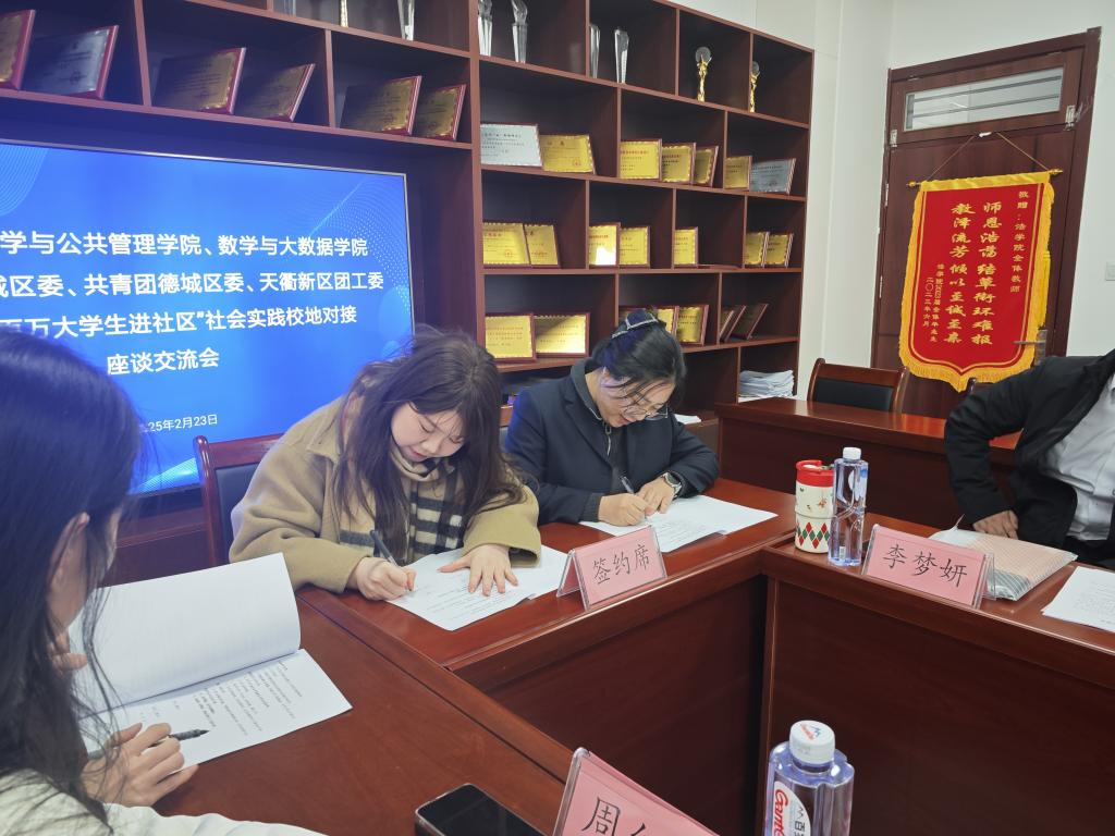 座谈会由学院党委书记武珊珊主持,学院院长杨振生介绍了德赢官网的基本情况、专业建设、人才培养、学科优势等。团陵城区委书记介绍了陵城区的经济社会发展情况、产业特色,各社区负责人介绍了社区基本情况与合作需求。与会各单位就实践项目的落地推进、具体细节、合作形式、品牌打造、提供保障等方面进行了深入的沟通交流,并签署合作协议,标志着校地合作迈入新阶段。各方表示,将以此次签约为契机,进一步加强沟通协作,深化合作领域,共同谱写校地合作新篇章。