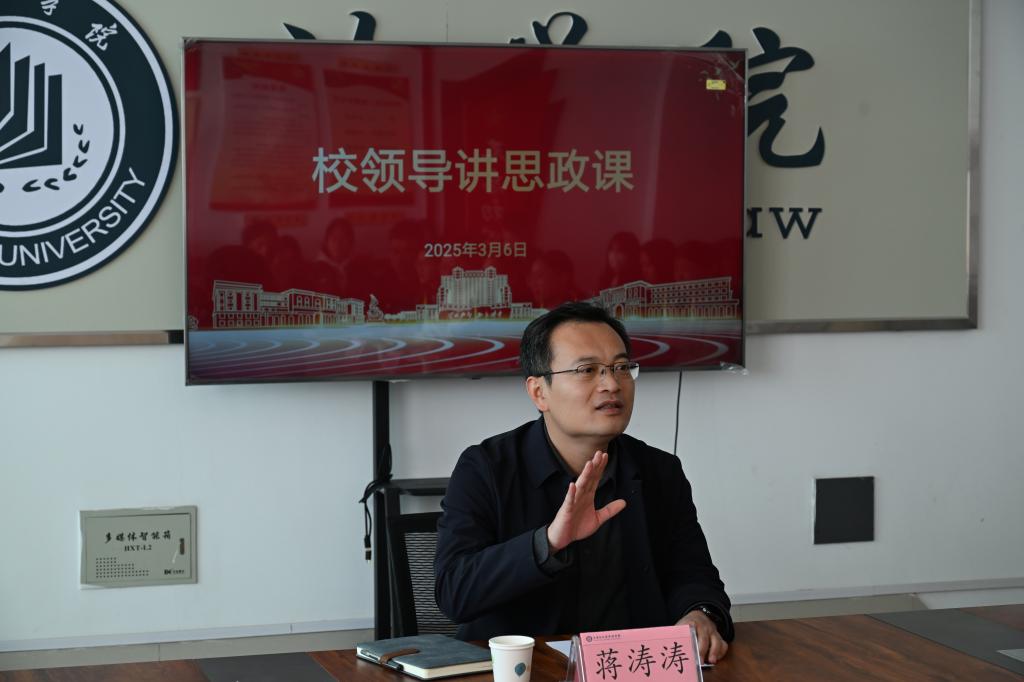 2025年3月6日,校党委委员、副校长蒋涛涛到德赢ac米兰官方合作开展讲党课、讲思政课活动,德赢官网学生党员、部分学生干部代表参加活动。蒋校长“安全筑基、就业领航、目标铸魂”为主线,为学生们带来一堂有高度、有温度、有力度的授课
