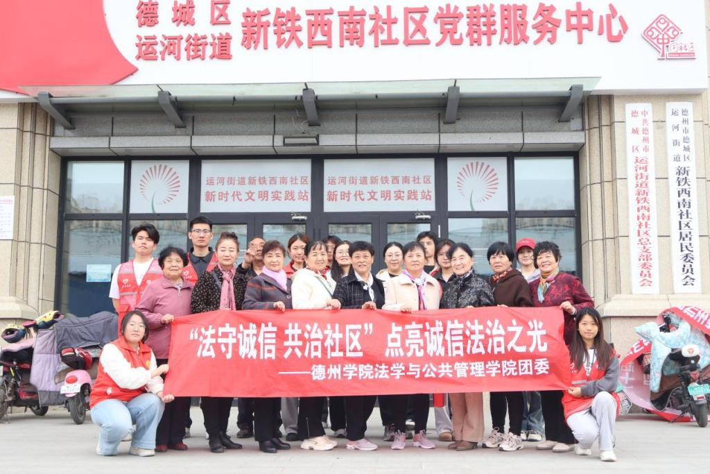 为深入贯彻落实党的二十大关于“弘扬诚信文化,健全诚信建设长效机制”的决策部署,积极响应山东省教育厅《“共同上一堂诚信主题思政大课”工作方案》要求,2025年4月8日,德赢ac米兰官方合作德赢ac米兰官方合作师生志愿者赴德城区铁西南社区,开展“法守诚信·共治社区——点亮诚信法治之光”主题实践活动,推动诚信法治教育走深走实。