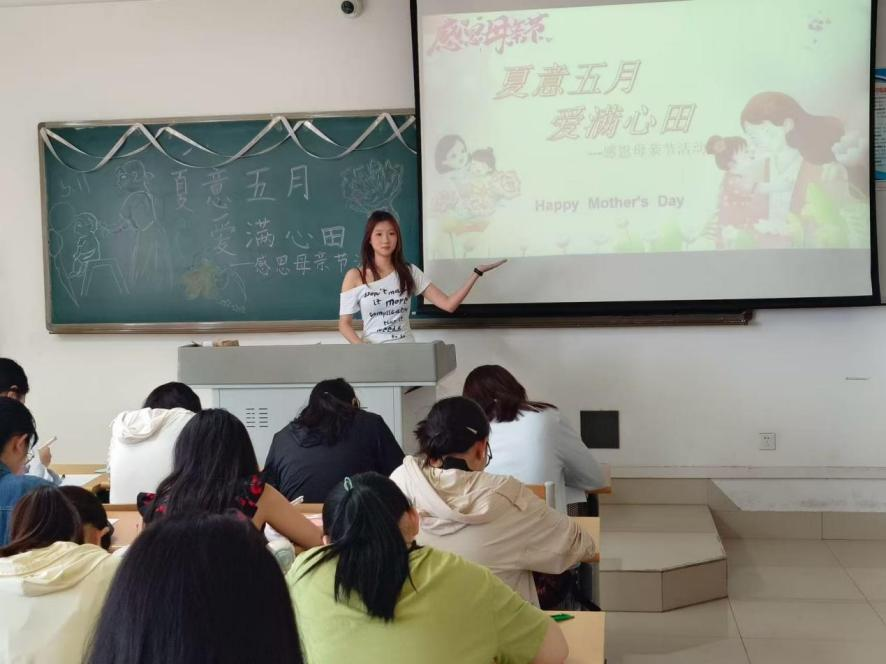 活动伊始,主讲人为同学们讲述了母亲节的起源故事,并通过一段网络视频,使同学们想起自己与母亲相处的日常画面,感受到母亲的耐心陪伴与默默付出,这些平凡却又无比动人的日常片段,引发了同学们强烈的共鸣,不少同学眼中泛起了感动的泪花。随后,在“母爱剪影描绘”环节,同学们用彩笔在A4纸上精心绘制与母亲共度的温馨时光,如一起烹饪家常菜、午后散步等场景,一幅幅精美的作品跃然纸上。接下来,在“爱心笺语书写”环节时,大家积极分享了与母亲在一起的难忘回忆,并在爱心卡片上写下对母亲的感恩话语,许下未来陪伴的承诺。最后,在作品展示环节,原本普通的黑板瞬间变成了一面充满爱意的展示墙,同学们互相交流、分享作品背后的故事。现场气氛热烈而温馨,爱意在空气中肆意流淌。同学们纷纷表示,要将这份感恩之情化作实际行动,在日常生活中多关心母亲、多陪伴母亲,用一点一滴的付出回报母亲的养育之恩。