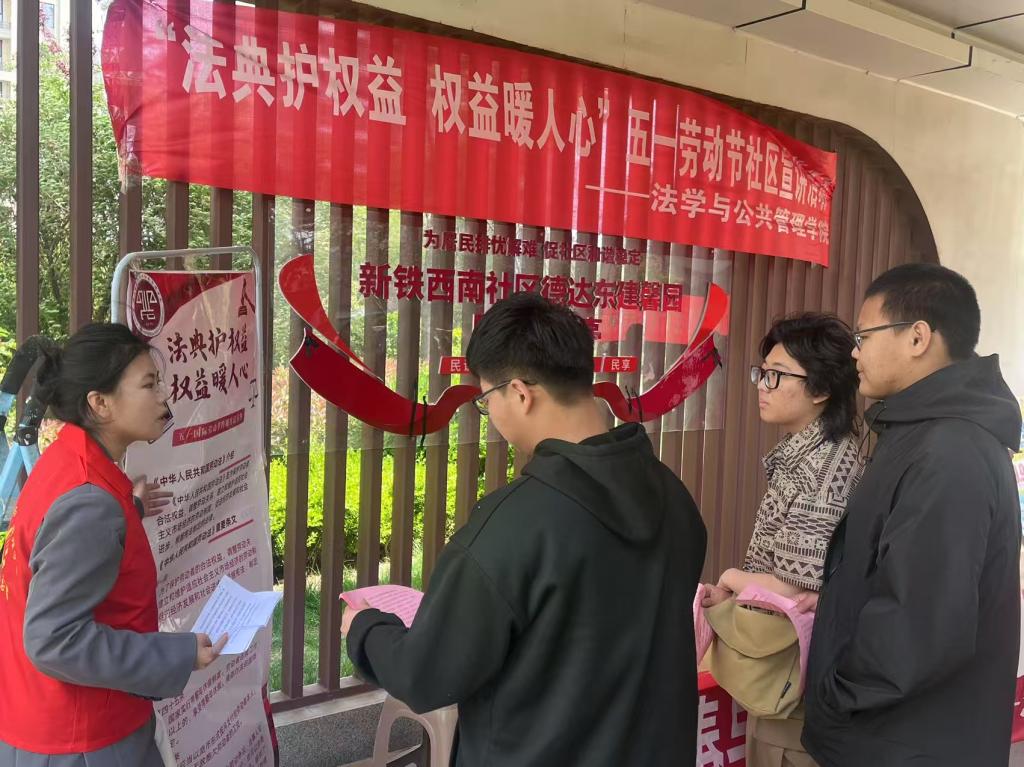 在第145个“五一”国际劳动节来临之际,为践行“法治为民”理念,2025年4月26日,德赢ac米兰官方合作志愿者走进新铁西南社区,开展“法典护权益,权益暖人心”主题公益普法活动。活动通过多样化的形式,为社区居民送上法律“及时雨”,全力护航劳动者依法捍卫自己的权益,守护他们的合法权益。