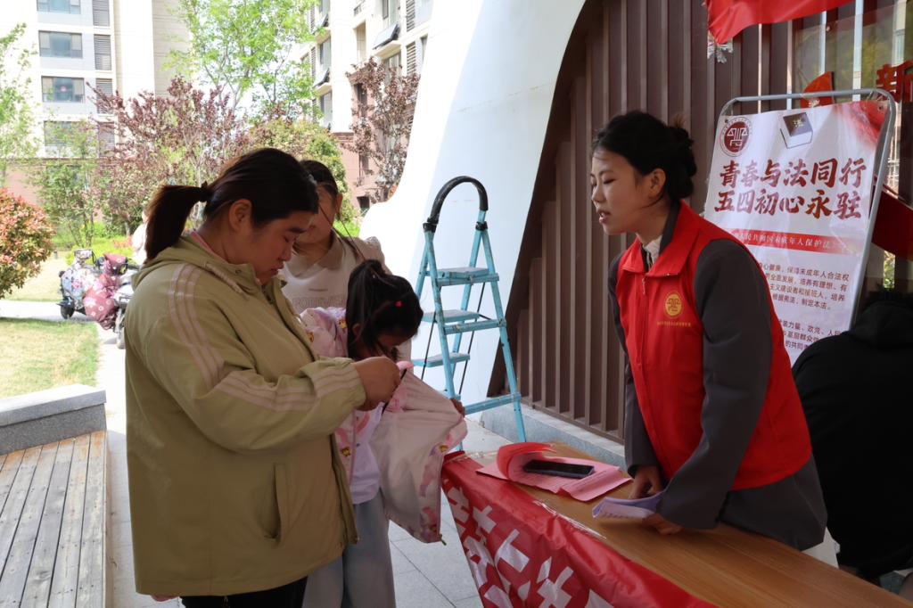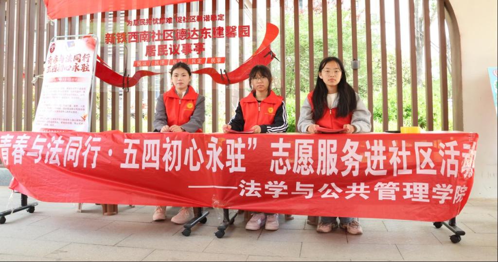 为弘扬五四精神,增强社区居民法治意识,将青春力量融入基层法治建设,4月26日,德赢ac米兰官方合作联合新铁西南社区开展“青春与法同行 五四初心永驻”志愿服务进社区活动,以生动多元的形式让法治理念走进千家万户,展现了新时代青年的责任与担当。