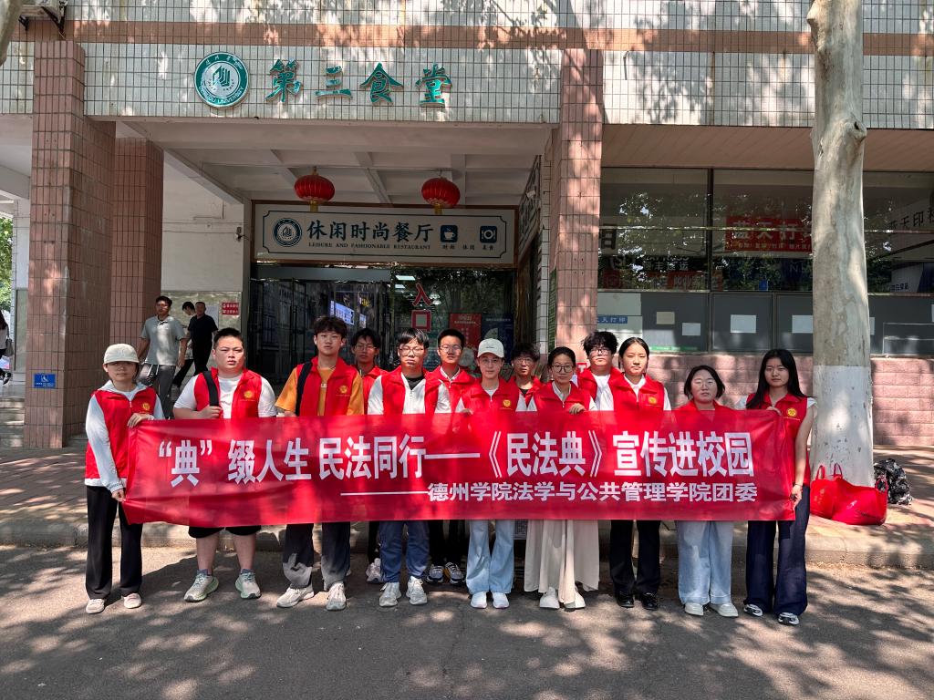 为积极响应全民普法号召,进一步增强《民法典》宣传力度,助力校园法治建设,德赢ac米兰官方合作于5月27日开展“典”缀人生 民法同行——《民法典》宣传进校园活动。此次活动旨在通过多样化的形式,向学生普及《民法典》知识,提高同学们的法律意识。