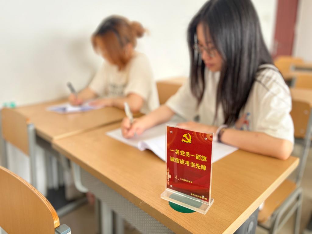 党员团员亮身份,先锋引领树标杆。学院特别强化党员、团员的模范带头作用,创新开展“亮身份、作承诺、严监督”行动。学院统一制作党员标识牌,要求全体学生党员在考试期间将其置于桌面醒目位置,主动亮明身份、践行承诺、接受师生监督,以“一名党员一面旗帜”的示范效应辐射带动全体考生自觉遵守考纪,为严肃考风注入强大先锋力量。