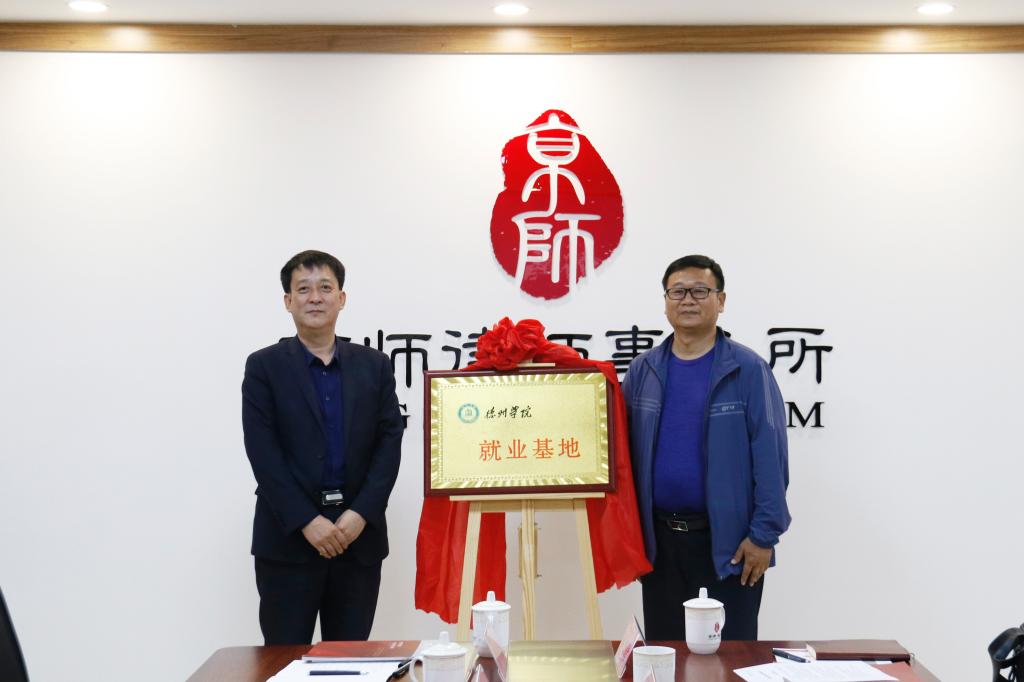 5月17日下午,法学院主要负责人、法学系和实践教学中心负责老师赴北京市京师(德州)律师事务所举行校企合作(实习实训基地)协议书签约及“德赢ac米兰官方合作实习实训基地”和“德赢ac米兰官方合作就业基地”揭牌仪式。北京市京师(德州)律师事务所主任宋国华等律所负责人接待了法学院一行,双方进行了深入的工作交流。