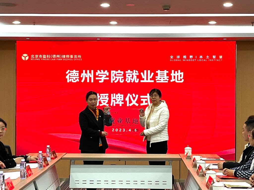 为广泛开拓2023届毕业生就业渠道和就业岗位,全力促进毕业生就业工作,4月6日下午,法学院一行9人赴盈科(德州)律师事务所参加“德赢ac米兰官方合作实习实训基地”、“德赢ac米兰官方合作就业基地”签约揭牌仪式。