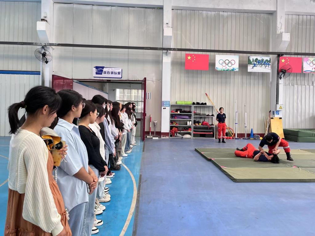 在活动期间,山东新中诚应急产业有限公司的教官带领法学院师生参观了公司内部的训练基地,就校园暴力防范,毒品防范,预防溺水等方面进行了专业知识的讲解。随后,教官又对同学们进行了女子防身术和校园暴力防控的演示。最后,2023级行政管理的学生又亲自体验了灭火器灭火和高空速降,增强了未来遇到此类危险时的应对能力。