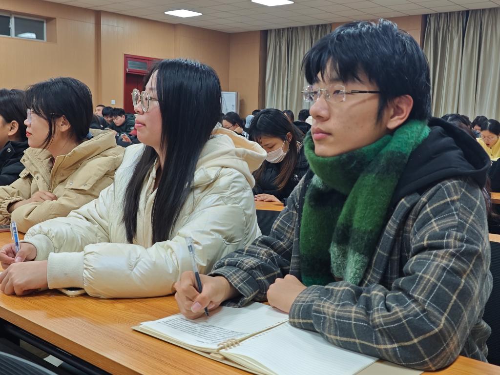 在交流问答环节,同学们踊跃发言,殷国鑫结合自己的经历给出针对性的建议,为同学们积极备赛提供了清晰思路。最后,殷国鑫激励同学们要不断提升自己的职业规划能力,明确职业目标,坚定追梦步伐。