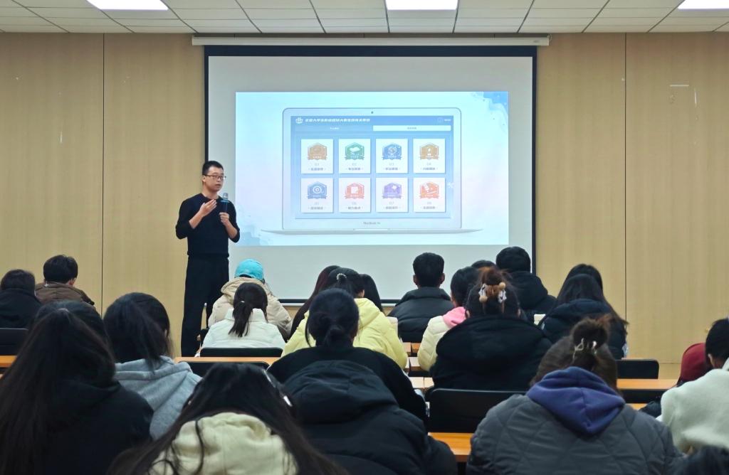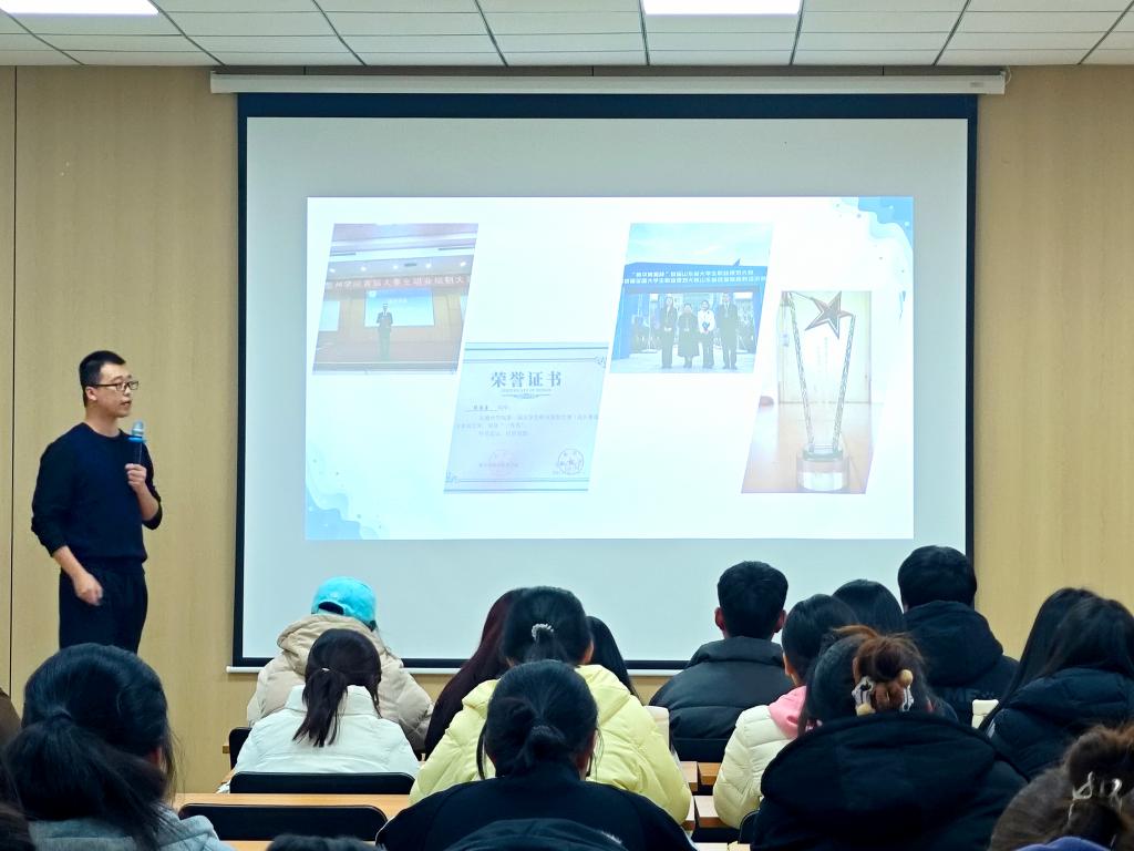 活动邀请首届山东省大学生职业规划大赛铜奖获得者、德赢ac米兰官方合作殷国鑫为同学们分享参赛流程及经验。殷国鑫围绕大赛流程及评分标准,详细讲解了PPT的制作技巧、生涯发展报告的框架设计及面试中的注意事项,强调现场展演时临场应变和逻辑思维的重要性,要抓住关键核心、找准定位、发掘亮点。