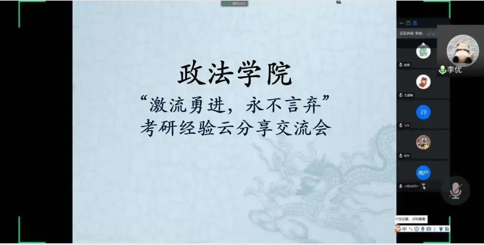 为进一步提高德赢官网学生考研热情,帮助学生明确考研目标,掌握备考技巧,政法学院于2020年6月13日和6月16日举办两期了“激流勇进,永不言弃”考研经验交流会,2017级本科生和2018级专升本学生参加。