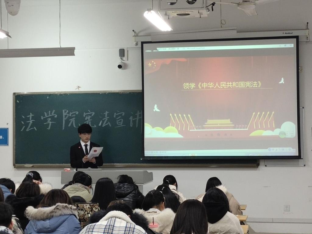 为深入学习贯彻习近平法治思想,普及宪法基本知识,大力弘扬宪法精神,培养大学生群体维护宪法、遵守宪法、捍卫宪法的意识与能力,12月4日以来,在德赢官网党委宣传部、团委的大力支持下,法学院组织法学专业同学成立大学生宪法宣讲队,深入各院系教室、宿舍开展宪法宣讲活动。