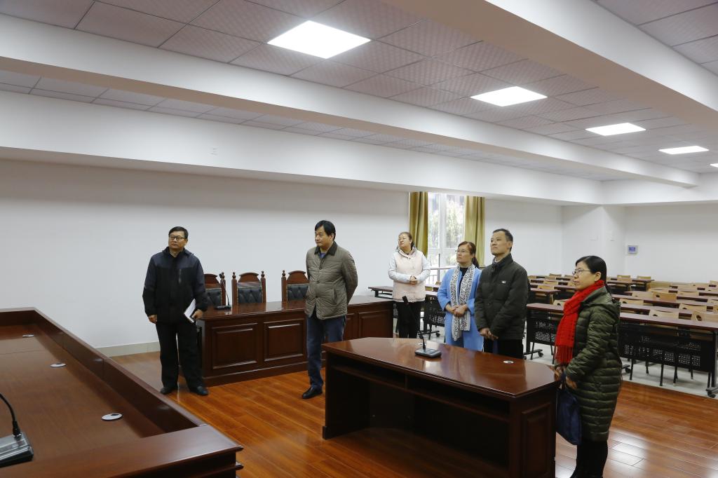 赵校长还到法学院模拟法庭进行了现场调研。学院负责人汇报了模拟法庭建设情况以及模拟法庭综合利用的有关安。赵校长给予充分肯定,并对模拟法庭建设提出了工作建议,要求法学院以模拟法庭实训中心为平台进一步抓好专业实践教学,同时要借助实训中心开展好学生社团、教研科研交流、社会服务等工作。