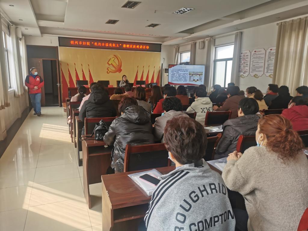 3月8日,德赢官网教师徐丽红(西南政法大学在读博士)应德州市妇联邀请,到德城区黄河涯镇开展农村妇女权益保护法律知识讲座,黄河涯镇全体机关女干部及村级妇联主席八十余人参加了此次培训。