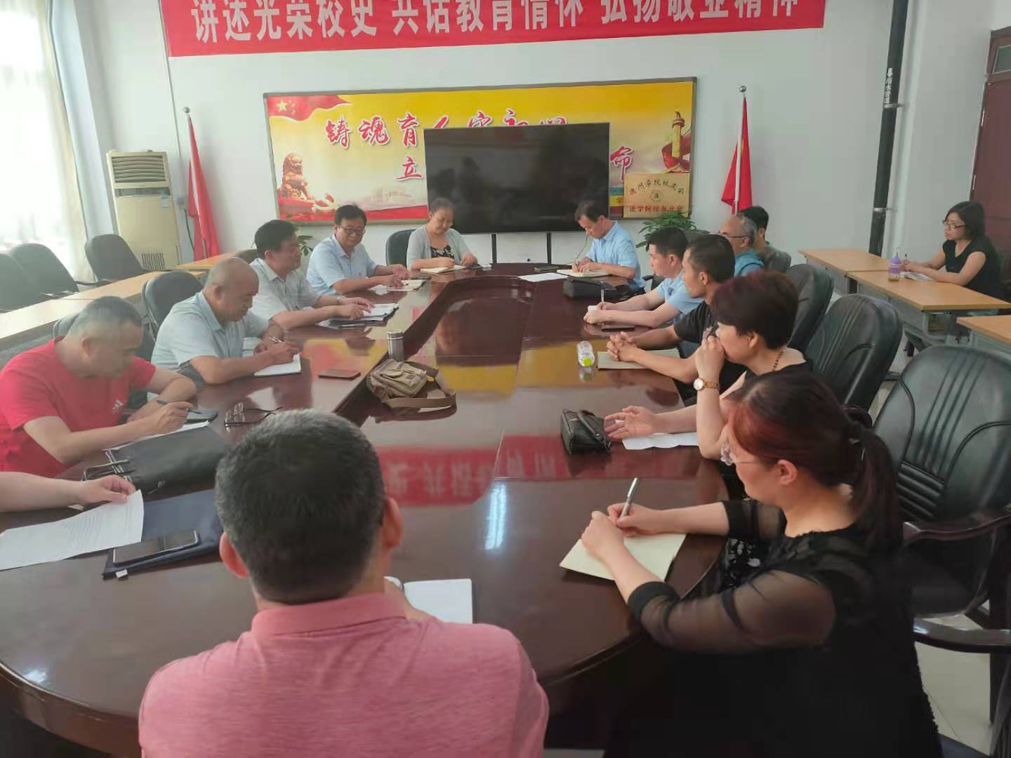 讲座结束后,赵胜村校长与法学院班子、教师代表进行了座谈,调研了法学院近期党史学习教育、安全稳定、师德师风教育、毕业生毕业就业、开展应用型转型大讨论、组建宪法法律宣讲团等工作情况,对近期关键工作进行指导,并与教师进行了思想交流。他强调了两个方面的工作:一是当前正值毕业生离校时期,一定要做好毕业生同学的思想政治教育与服务工作,提高思想认识,采取有力措施, 把工作做细做到位,确保毕业生工作安全、稳妥、有序开展;二是要把学校应用型本科高校建设思想解放大讨论工作做扎实,为学校应用型转型工作的顺利开展打下坚实的思想基础。广大教师要提高认识,统一思想,充分认识到地方高校转型发展是高等发展的必然趋势,不转不行,不转就没有出路。法学院一定要结合学科专业特点,深入思考“怎么转”和“怎么转好”这些关键问题,推动法学院应用型人才培养创新发展、实现新突破。