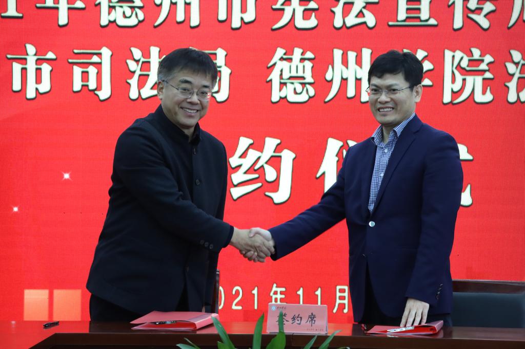 活动中,副校长李永平和司法局局长李福辉共同签署了德州市司法局和德赢ac米兰官方合作法治共建协议。