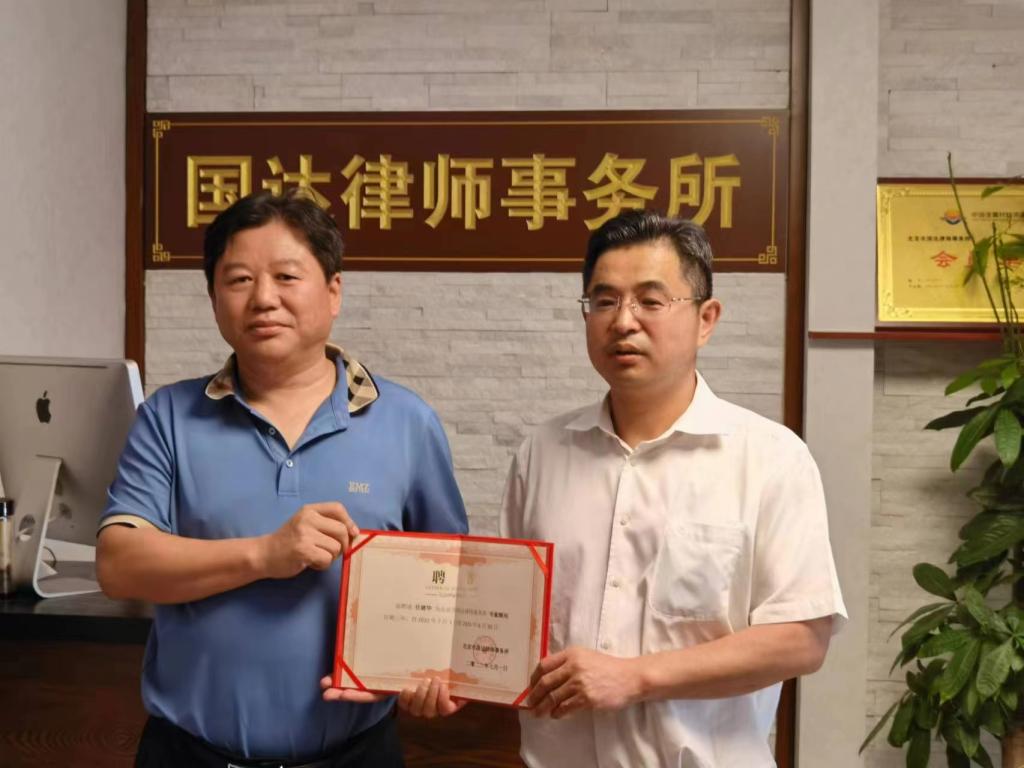 7月1日,法学院教师、司法理论与实务研究中心主任任建华老师受邀参加北京市国达律师事务所法律顾问聘任仪式,会议宣读了关于聘任任建华为北京市国达律师事务所专家顾问的通知,并为他颁发了聘书。