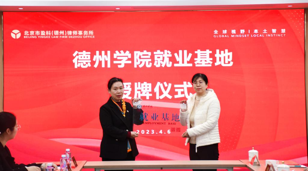 2023年4月6日下午,法学院与北京盈科(德州)律师事务所实习实训基地和就业基地签约仪式在北京盈科(德州)律师事务所隆重举行。法学院主要负责人等一行九人参加活动,北京盈科(德州)律师事务所执行主任李君等律所领导热情接待了法学院一行。