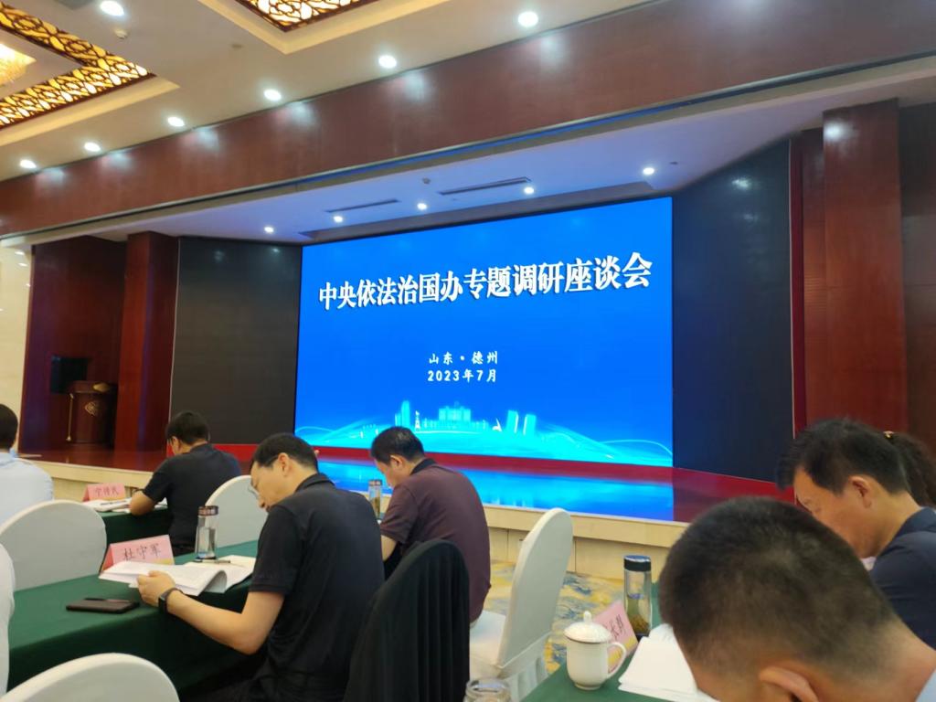 7月21日,中央依法治国办调研组在德州召开专题调研座谈会。调研座谈会就强化依法决策、健全政府法律顾问制度、优化法治化营商环境等方面工作展开调研座谈,并征求意见建议。德赢官网杨振生副院长作为被推荐法学专家应邀参加了调研座谈会。
