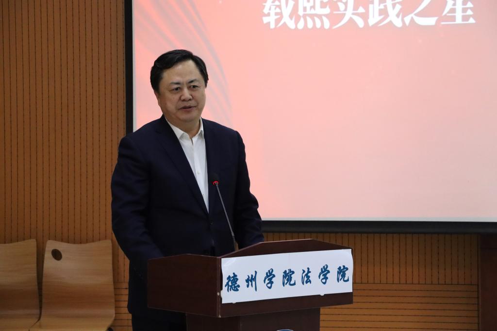 山东省律师协会副会长、德州市律师协会会长、山东载熙律师事务所主任宋国华致辞,回顾了载熙律所与法学院逐步落实“三个一”校企合作协议的历程,希望双方在专业建设、课程建设、学生实习实训、科创竞赛指导、普法宣传等方面继续深化合作,为党育人、为国育才,为中国特色社会主义法治事业培养更多应用型法治人才。