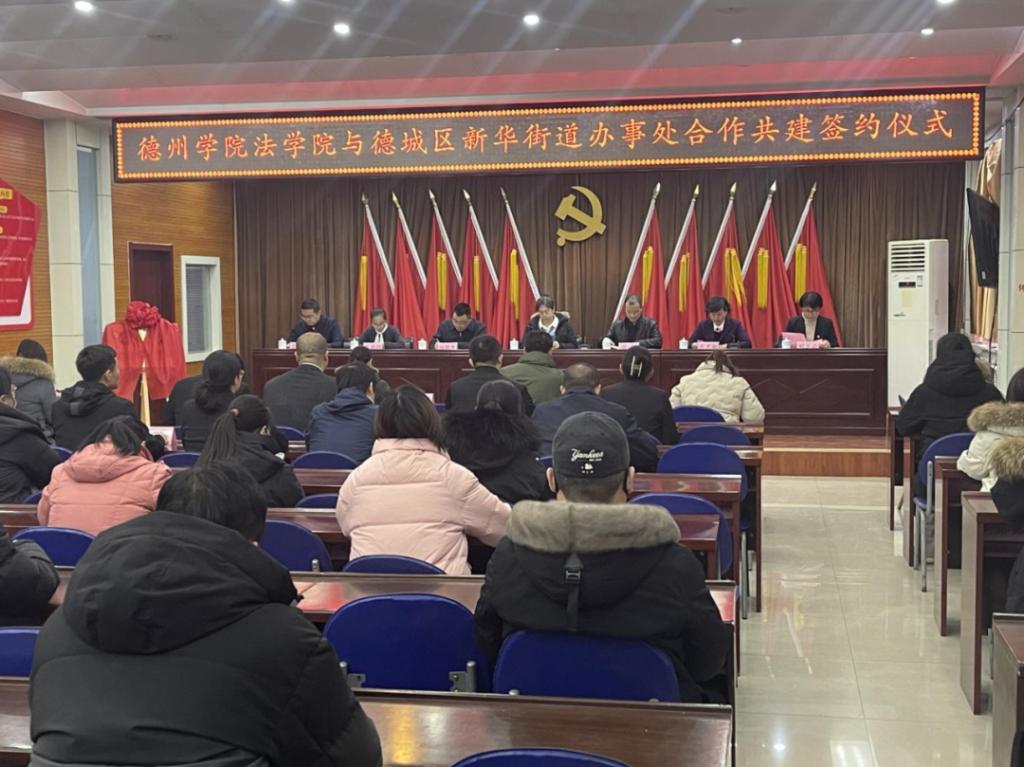 1月23日下午,法学院与新华街道合作共建签约仪式在新华街道办事处顺利举行。德城区、法学院、新华街道办事处相关负责人和工作人员参加了活动。