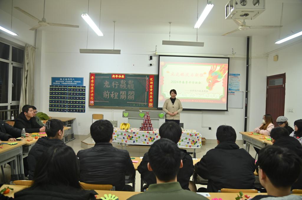 辅导员耿雯老师精心布置班会场地,喜迎同学们回家。班会现场欢声笑语,其乐融融,同学们争先恐后地分享着各自的寒假体验和有趣经历。有寒假学习成果、有社区志愿服务、有专业实践感悟、有青鸟计划就业认知,也有“年味儿”制作、民俗文化调研等。每个学生的假期充实而有意义。