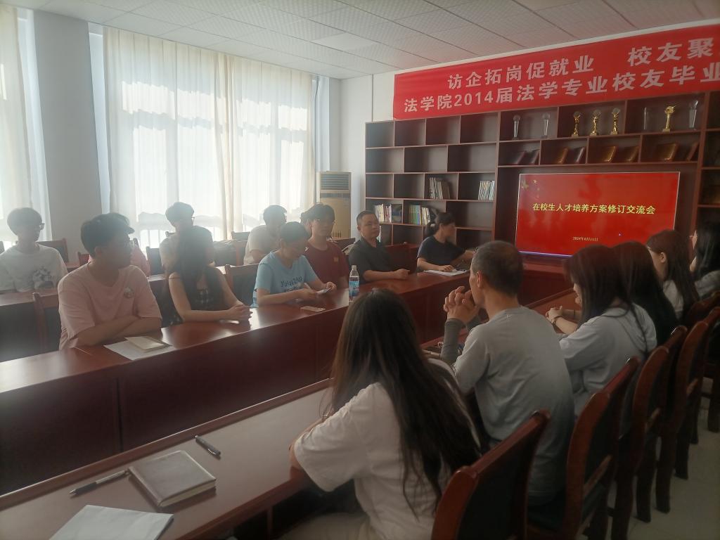 6月11日下午,法学院举行在校生人才培养方案修订交流会。法学院主要负责人、分管教学负责人、系主任、2021级、2022级、2023级各班学生代表30余人参加会议。