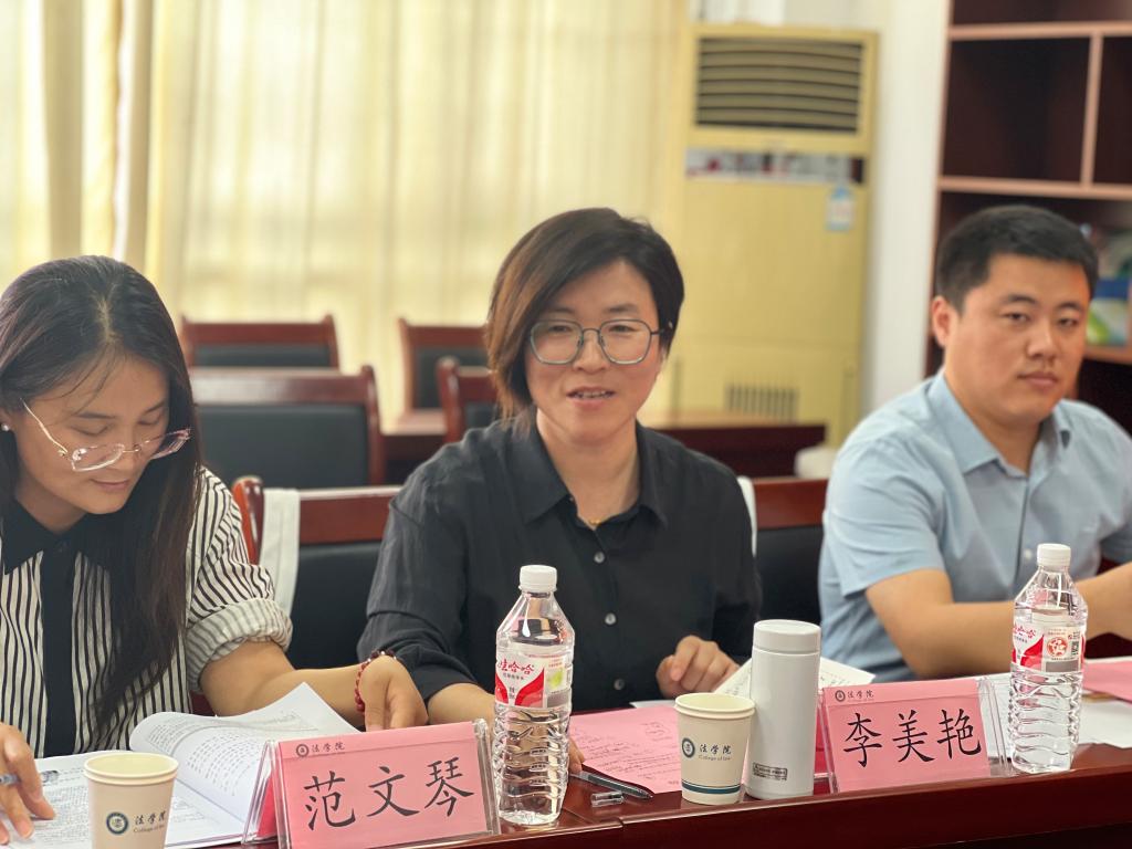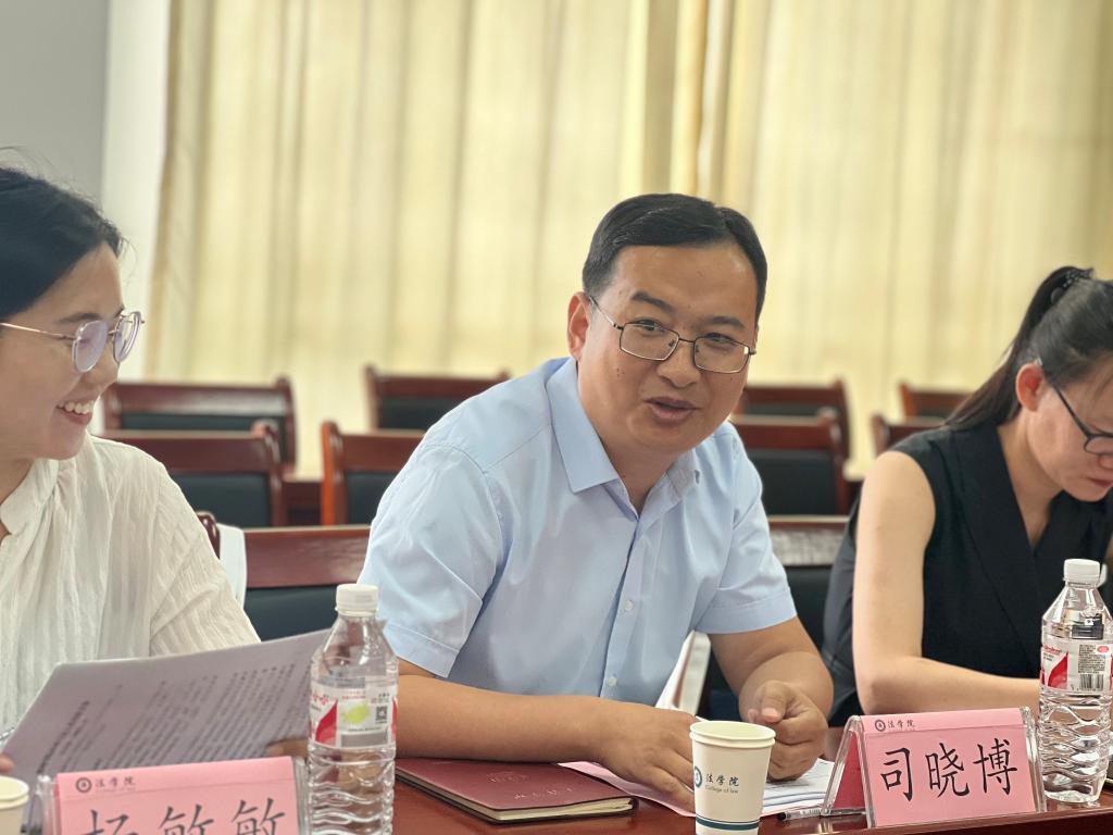 6月16日上午9 点,法学院在博文楼439 会议室举行校外实务专家人才培养方案修订论证交流会。参加论证会的校外实务专家有德城区人民法院副书记、副院长司晓博,德州市中级人民法院知识产权庭庭长张小雪,德城区工业和信息化局党组成员、技术改造服务中心主任杨敏敏,德城区应急管理局办公室主任范文琴,山东思昂律师事务所主任、1979 级校友庞小华,山东载熙律师事务所执行主任李美艳,德城区人民检察院第三检察部副主任、2002级校友吕玉梅,山东载熙律师事务所律师、2010级校友杨儒。法学院院长陈伟、副院长杨振生、党委副书记左海静、院长助理张福磊、院长助理刘东玲、办公室主任邵玉东、法学系主任石春东、法学系副主任凡冬梅等参加了交流研讨。