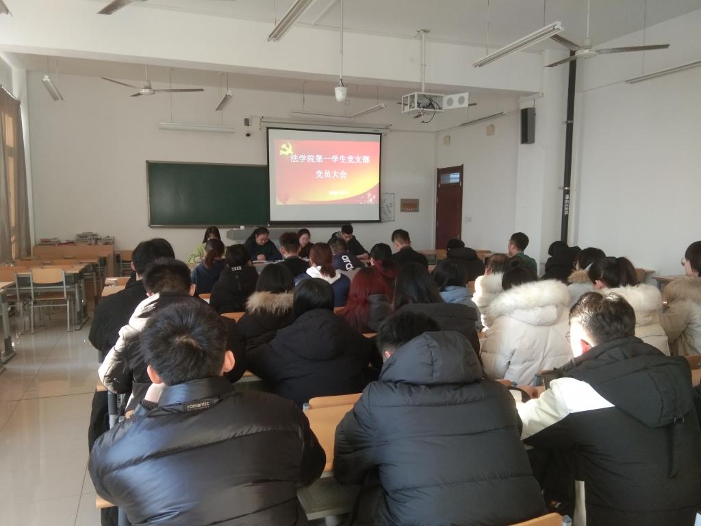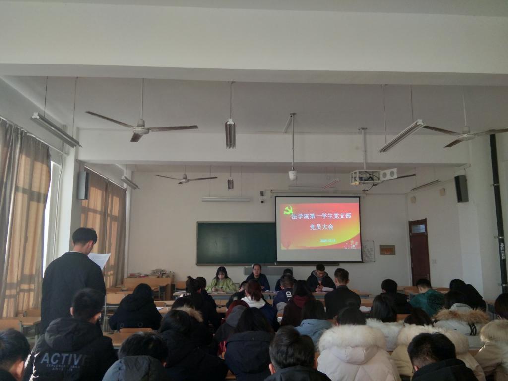为加强德赢官网学生党员队伍建设,保持队伍先进性,2020年12月15日下午三点,法学院第一学生党支部于博文楼417教室召开讨论接收预备党员支部大会,讨论表决是否接收发展对象王厚童等10名同志为中共预备党员。法学院党总支副书记米彦同志列席监督了此次会议。